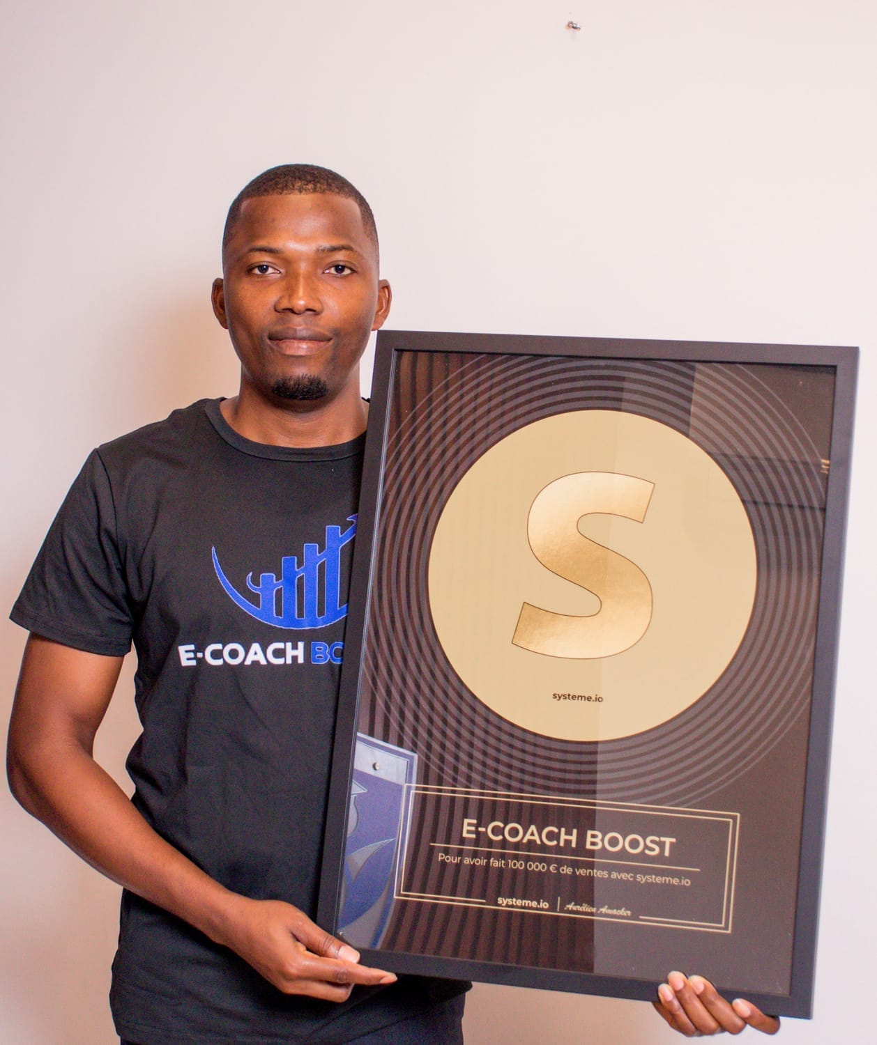 Nous venons de recevoir le TROPHÉE SYSTÈME.IO pour avoir aidé une de nos clientes à dépasser les 100 000€ de chiffre d'affaires EN SEULEMENT 4 MOIS.